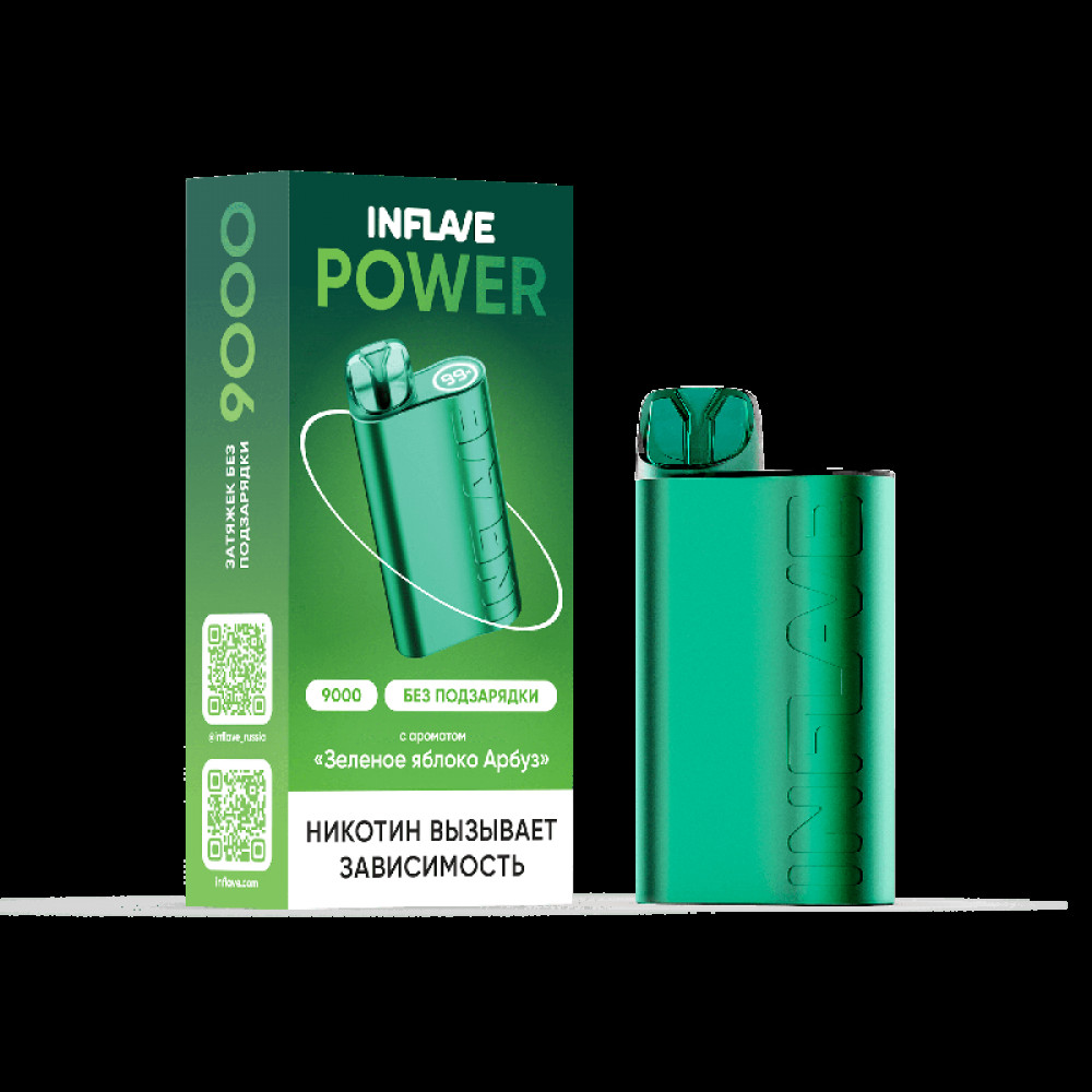 Электронная сигарета INFLAVE POWER 9000 затяжек Зеленое Яблоко Арбуз - купить в Усолье-Сибирском